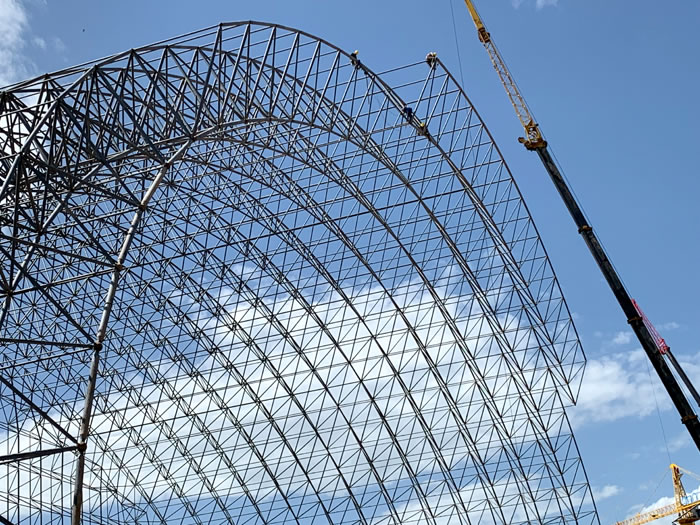 (2)网架加工前应对现场尺寸进行复测,确认无误后方可进行加工、安装;网架制作、运输、安装应遵守《空间网格结构技术规程》JGJ7-2010、《钢网架临江螺栓球节点》JG/T 10-2009、《钢网架临江螺栓球节点用高强度螺栓》 GB/T 16939-2016、《临江钢结构临江工程临江施工规范》 GB50755-2012、《临江钢结构临江工程临江施工质量验收标准》 GB50205-2020。